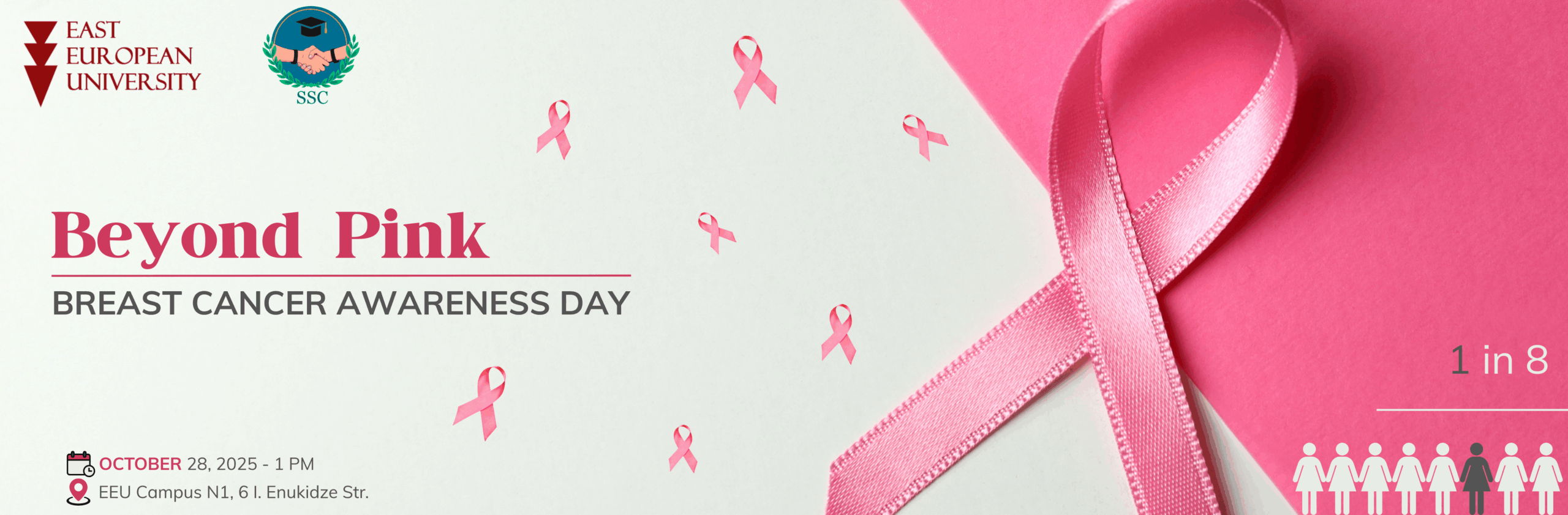 The event “Breast Cancer Awareness Day – Beyond Pink” will take place on October 28, 2025, at 1:00 PM in the EEU Conference Hall Organized by the Student Support Community and the Faculty of Healthcare Sciences of East European University (EEU).