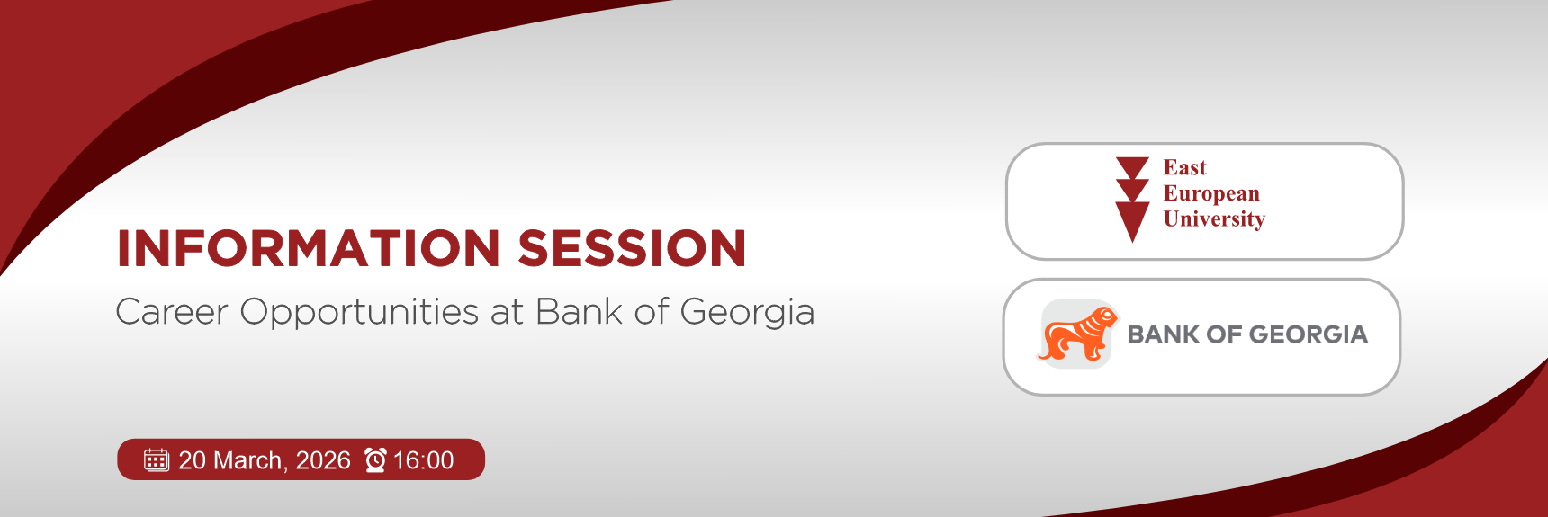 On March 20 of the current year, at 16:00, an information session for students will be held in the EEU Conference Hall as part of a joint initiative of East European University (EEU) and Bank of Georgia. The meeting will focus on the topic: “Career Opportunities at Bank of Georgia.”
