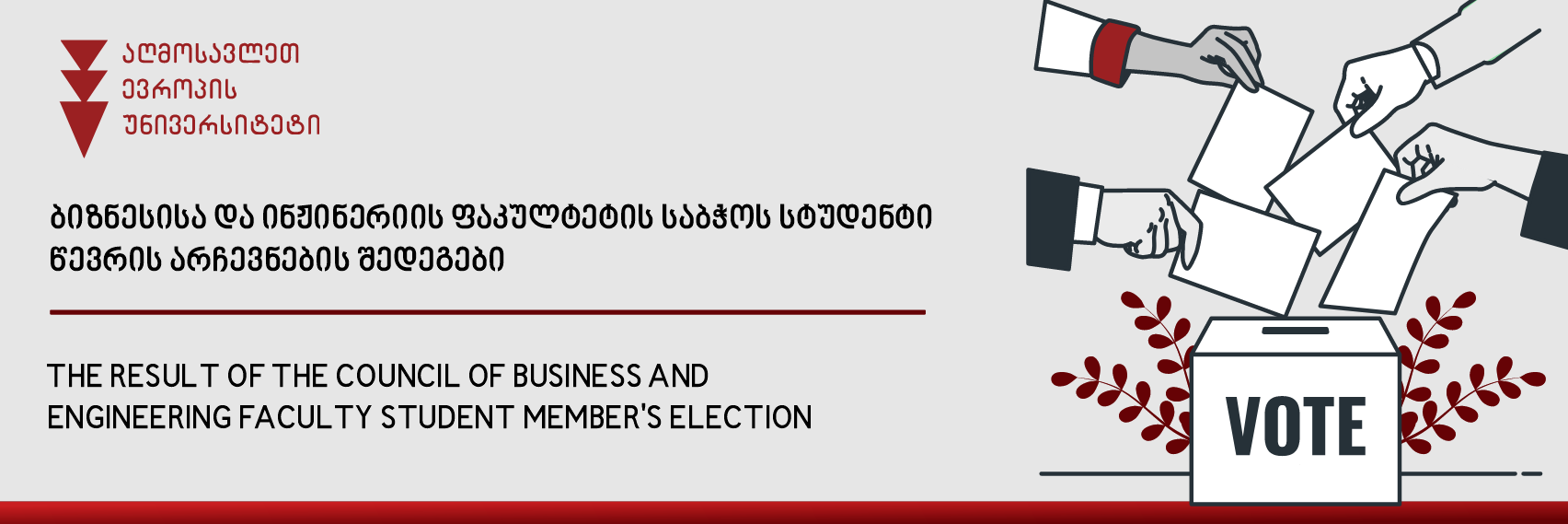 აღმოსავლეთ ევროპის უნივერსიტეტის ბიზნესისა და ინჟინერიის ფაკულტეტის დებულების თანახმად, 2026 წლის 03 აპრილს გაიმართა უნივერსიტეტის სტუდენტური თვითმმართველობის საერთო კრება.
