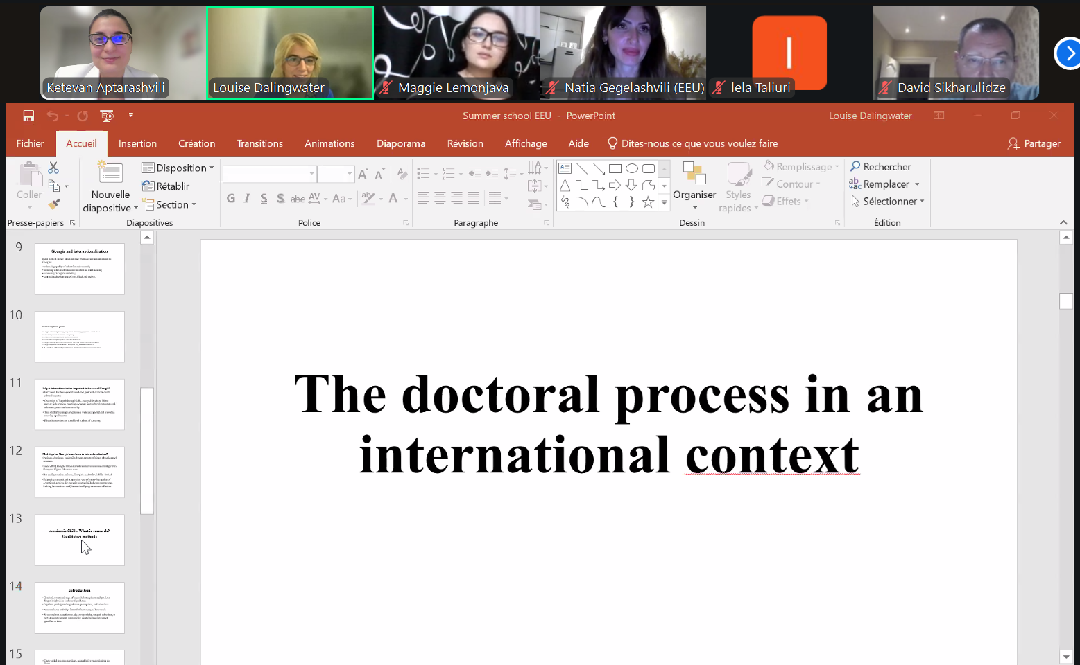 საზაფხულო სკოლას ხელმძღვანელობას უწევდა დოქტორი ლუიზ დელინგუოთერ, რომელიც არის სორბონის უნივერსიტეტის პროფესორი, EEU-ს აფილირებული პროფესორი, განათლების მეცნიერებების სადოქტორო პროგრამის ხელმძღვანელი EEU-ში.