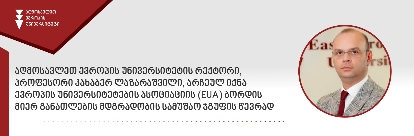 აღმოსავლეთ ევროპის უნივერსიტეტის რექტორი, პროფესორი კახაბერ ლაზარაშვილი ევროპის უნივერსიტეტების ასოციაციის (EUA) საბჭოს მიერ ასოციაციის განათლების მდგრადობის სამუშაო ჯგუფის წევრად იქნა არჩეული.