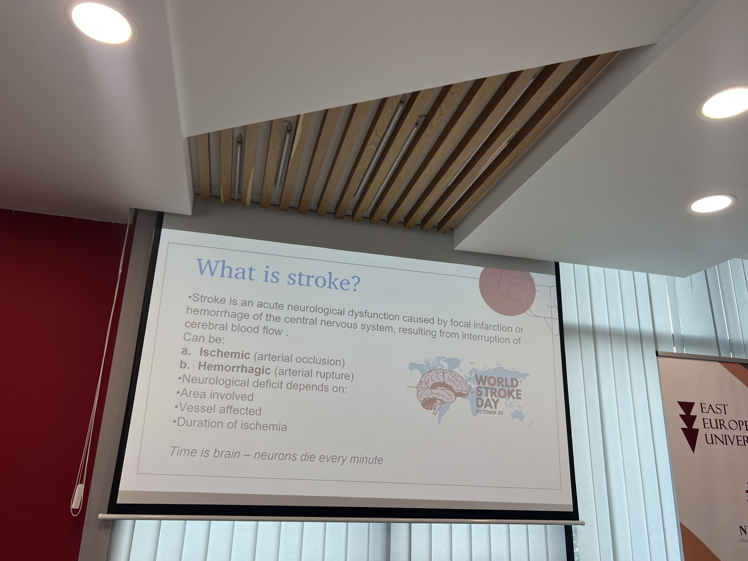 აღმოსავლეთ ევროპის უნივერსიტეტის (EEU) სტუდენტური კლუბის “Neurozeal”-ისა და ჯანდაცვის მეცნიერებათა ფაკულტეტის ორგანიზებით, 2025 წლის 25 დეკემბერს საგანმანათლებლო-პრაქტიკული ვორქშოპი „ცხოვრება ინსულტთან ერთად“ გაიმართა.