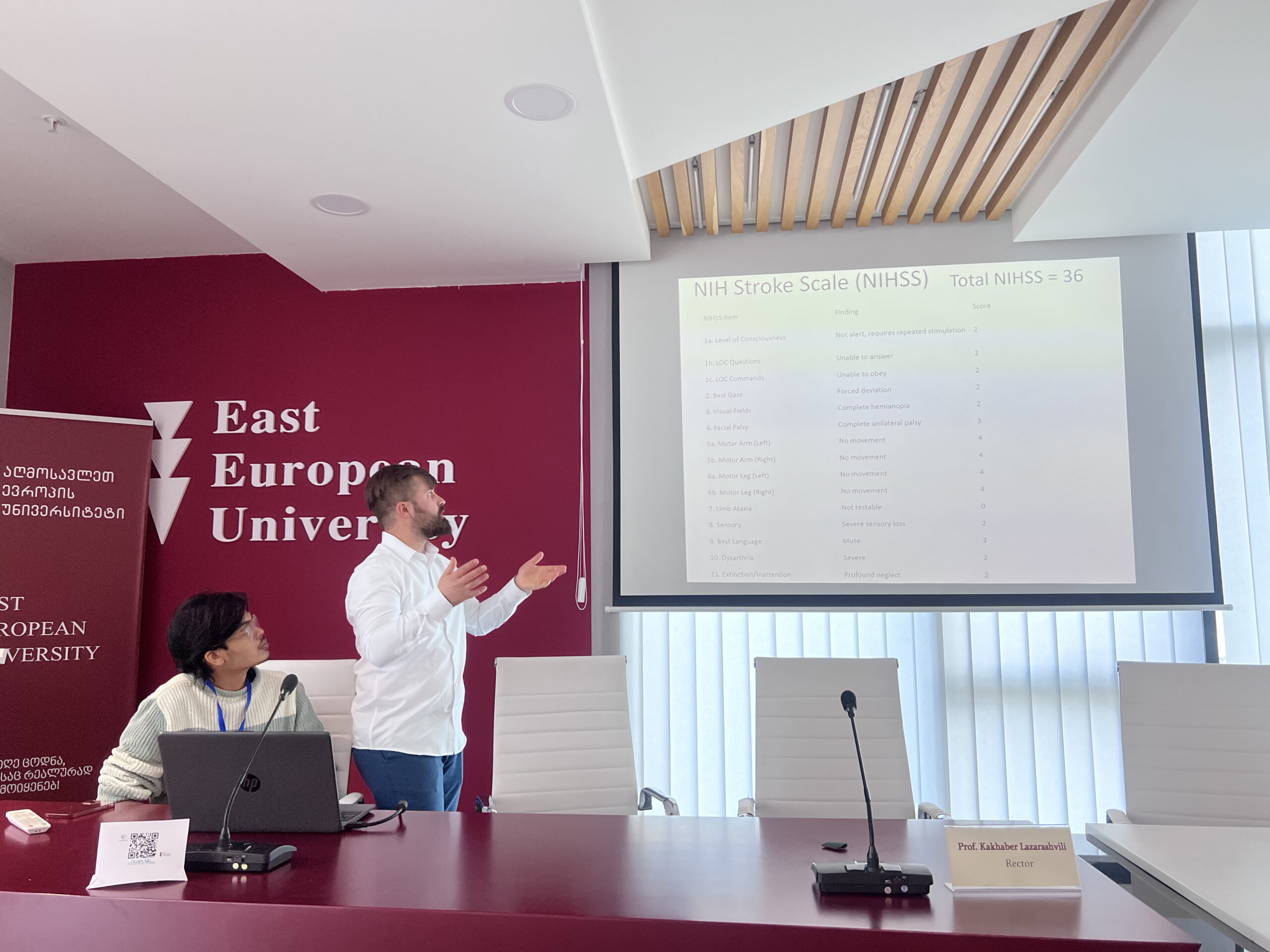 სტუდენტები აქტიურად ჩაერთნენ ინტერაქტიულ ვორქშოპში, სადაც მათ საშუალება ჰქონდათ სიმულაციურ პაციენტებზე პრაქტიკულად შეეფასებინათ ინსულტის შემდგომი ნევროლოგიური სტატუსი NIH Stroke Scale-ის გამოყენებით. სესიას თან ახლდა ინსულტგადატანილი რეალური პაციენტების მიერ შესრულებული ხელოვნების ნიმუშების გამოფენა, ასევე ცნობიერების ამაღლებაზე ორიენტირებული სხვადასხვა აქტივობები, რომლებიც მიზნად ისახავდა სტუდენტთა აქტიურ ჩართულობასა და ცოდნის გაზიარების წახალისებას.