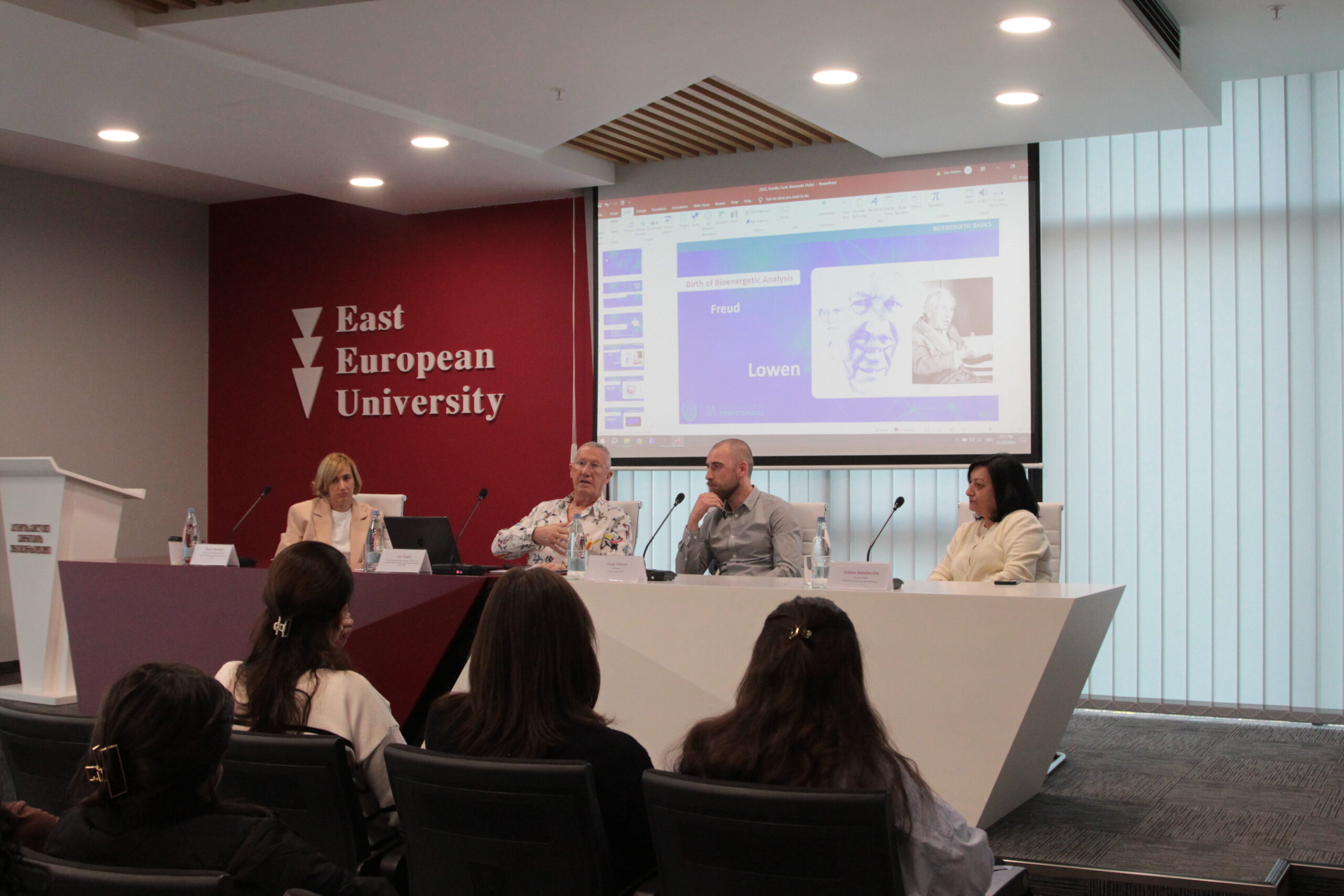 On November 26, 2025 East European University (EEU) hosted Guy Tonella a Doctor of Clinical Psychology and a Trainer at the International Institute for Bioenergetic Analysis. He conducted a seminar on the topic ,,The Psychotherapeutic Method of Bioenergetic Analysis’’.