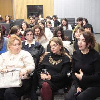 Guy Tonella was introduced to the audience by Tinatin Pantsulaia, EEU Professor and Head of ,,Idilia’’. The seminar participants were also greeted by Zukhra Matsaberidze Dean of the Faculty of Legal and Social Sciences.