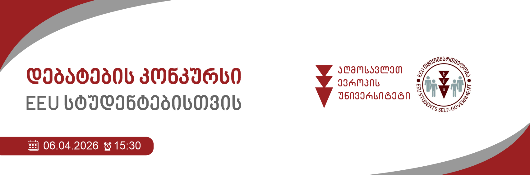 აღმოსავლეთ ევროპის უნივერსიტეტის EEU-ს სტუდენტური თვითმმართველობის ინიციატივით 2026 წლის 6 აპრილს, 15:30 საათზე გაიმართება დებატების კონკურსი.