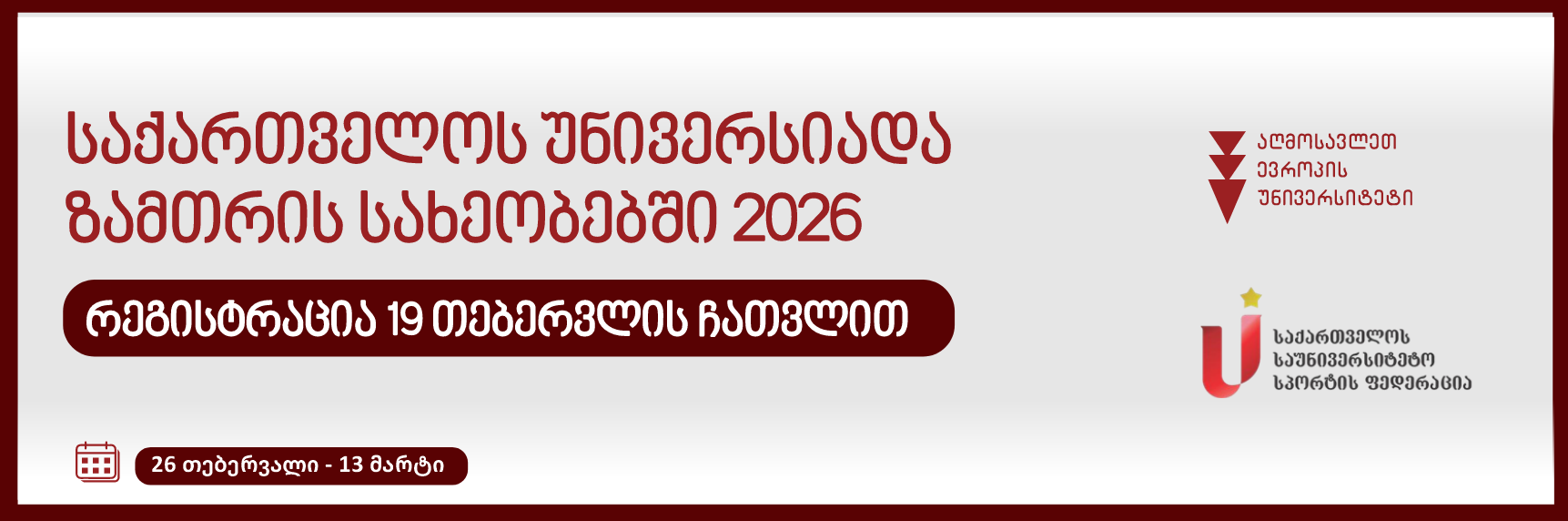 2026 წლის 26 თებერვლიდან 13 მარტამდე საქართველოს საუნივერსიტეტო სპორტის ფედერაციის ორგანიზებითა და საქართველოს სპორტის სამინისტროს მხარდაჭერით დაბა ბაკურიანში გაიმართება ყოველწლიური სტუდენტური პროექტი „საქართველოს უნივერსიადა ზამთრის სახეობებში 2026“.